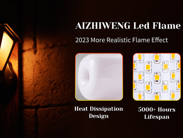 Instantly add an inviting and realistic flickering flame to any indoor or outdoor lamp or light fixture. Our hyper-realistic LED bulb flames work with gravity! Amazingly, even when the bulb faces down, the faux flames always go up like real fire.