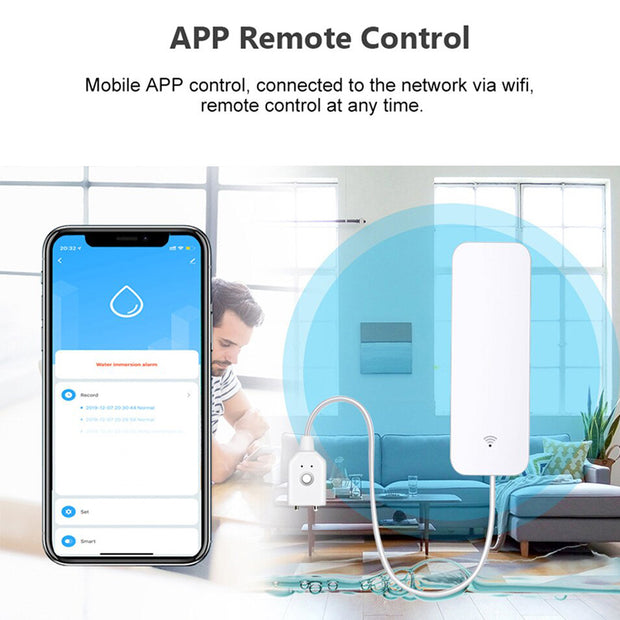 The sensor can detect whether there are water leakage at the installation location. If this is found, the information will be pushed to the phone immediately.