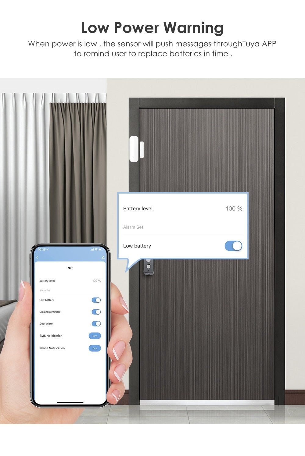WiFi Door/Window Sensor with App Alerts for Home Security