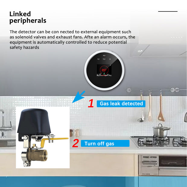 The detector can be connected to external equipment such as solenoid valves and exhaust fans.Afte an alarm occurs, the equipment is automatically controlled to reduce potential safety hazards.