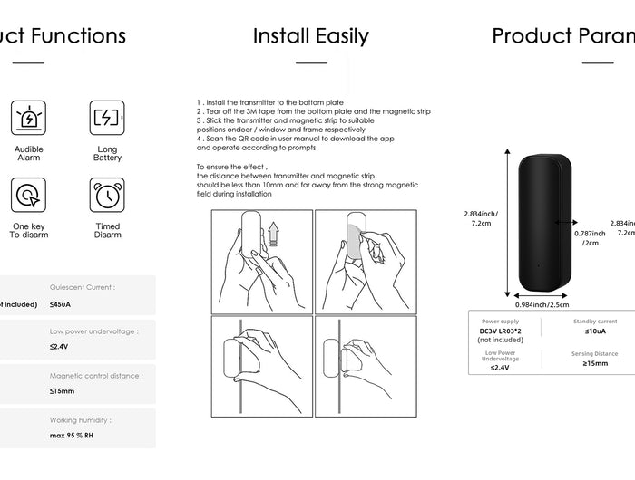 Push instant notification to your phone immediately when the door or window is opened or closed. Keeping you informed all the time.